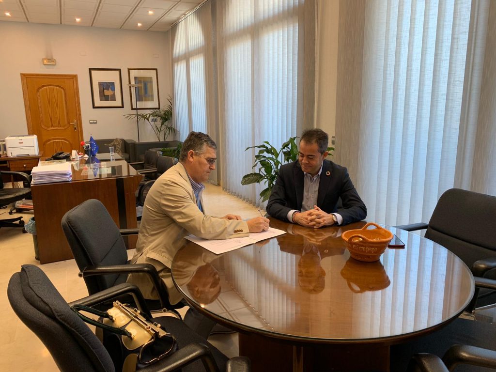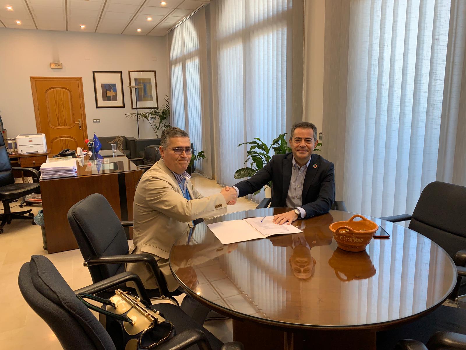 El alcalde de Lorquí, Joaquín Hernández Gomariz, y el directivo de D´Genes Diego Bernal, han suscrito el convenio por el que el consistorio se compromete a abonar dicha cantidad a la asociación.