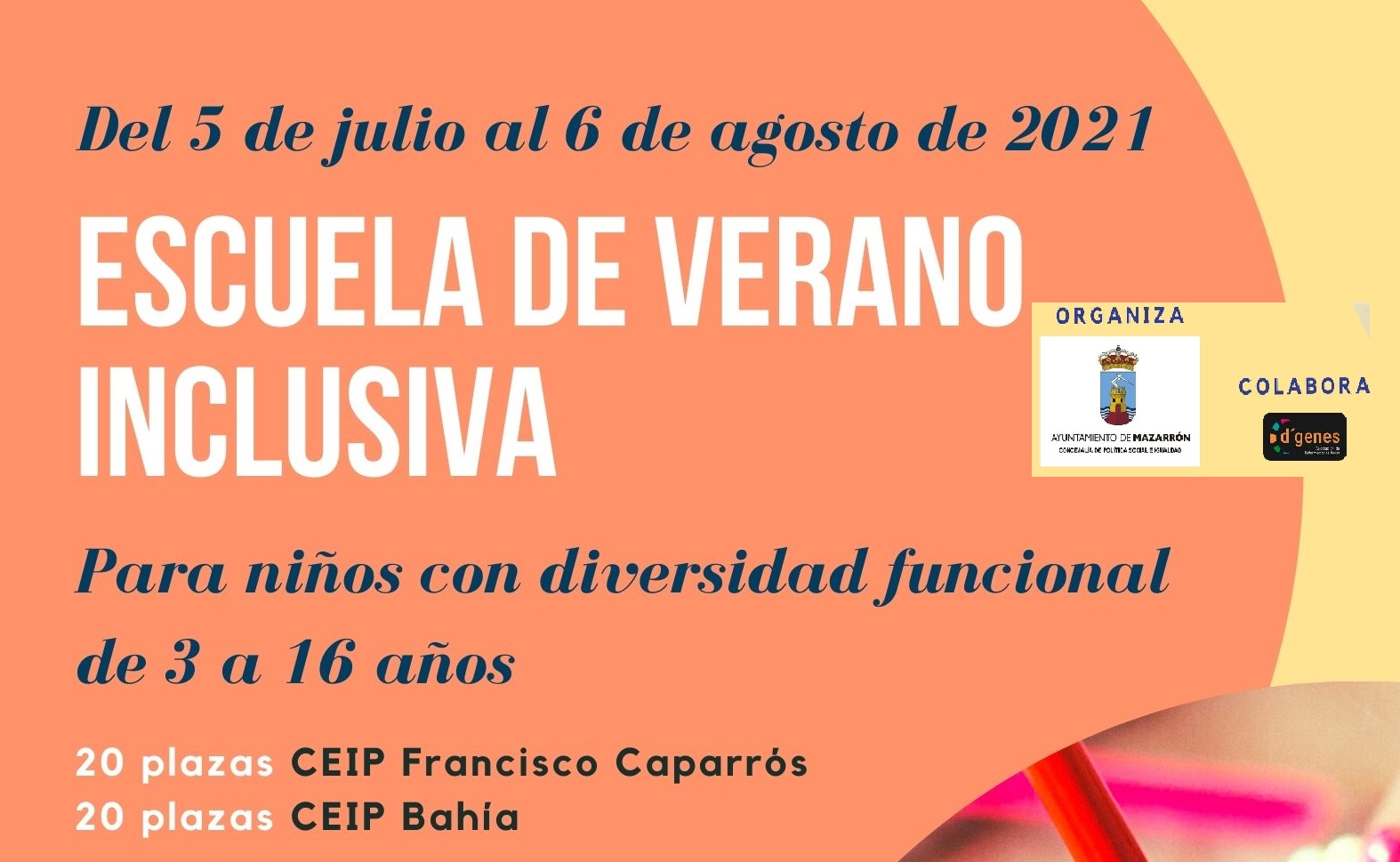 El Ayuntamiento de Mazarrón, con la colaboración de la Asociación de Enfermedades Raras D´Genes, va a llevar a cabo una Escuela de Verano inclusiva en este municipio del 5 de julio al 6 de agosto.