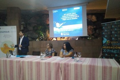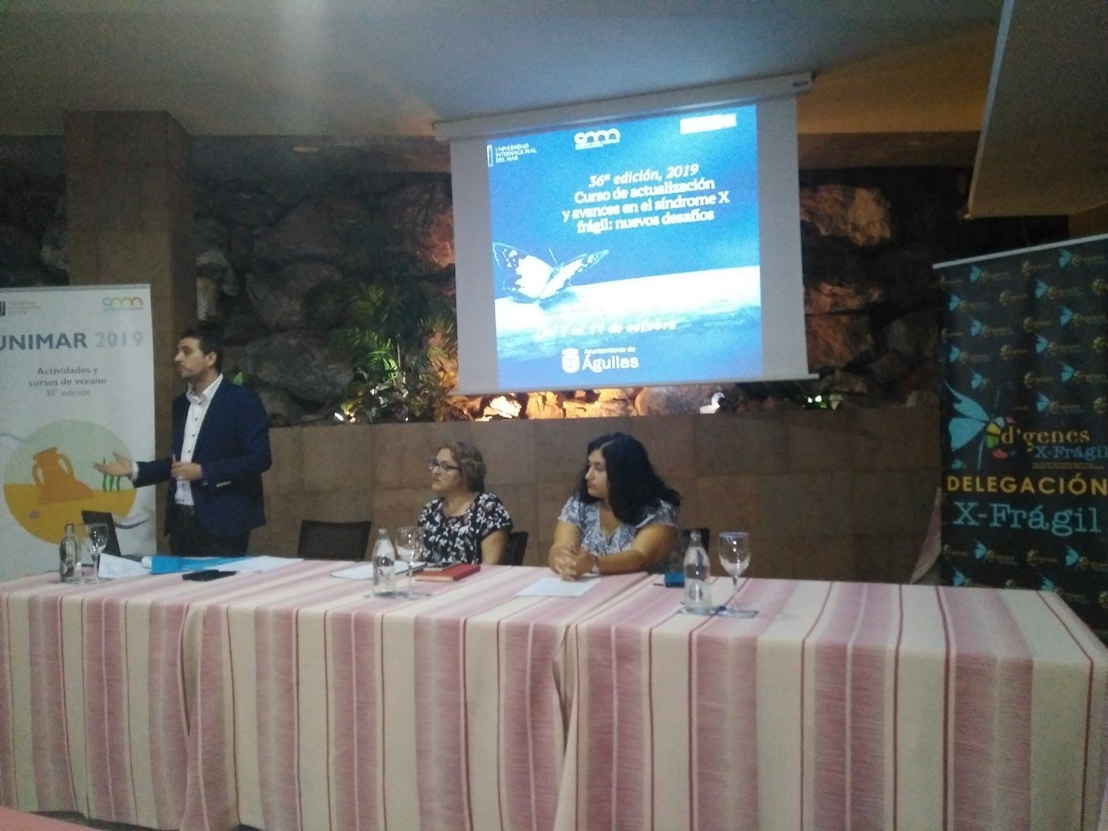 El programa formativo ha sido inaugurado por la directora de la Universidad Internacional del Mar, Mª José Portillo; el concejal de Juventud de Águilas, Juan Andrés Torres; y el director del curso, Miguel Ángel Ruíz Carabias. En esta primera jornada se han podido escuchar testimonios de afectados y familiares, así como conocer avances y actualizaciones en tratamientos. Asimismo, se han presentado buenas prácticas de asociaciones de X Frágil y la doctora Yolanda de Diego ha hablado de nuevos retos en investigación.