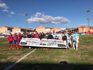 Además, antes del inicio del encuentro jugadores de ambos equipos, junto a miembros de D´Genes, entre ellos su presidente, Juan Carrión, se han realizado una foto con una pancarta para dar visibilidad al Día Mundial de las enfermedades raras que se conmemorará el próximo 28 de febrero.