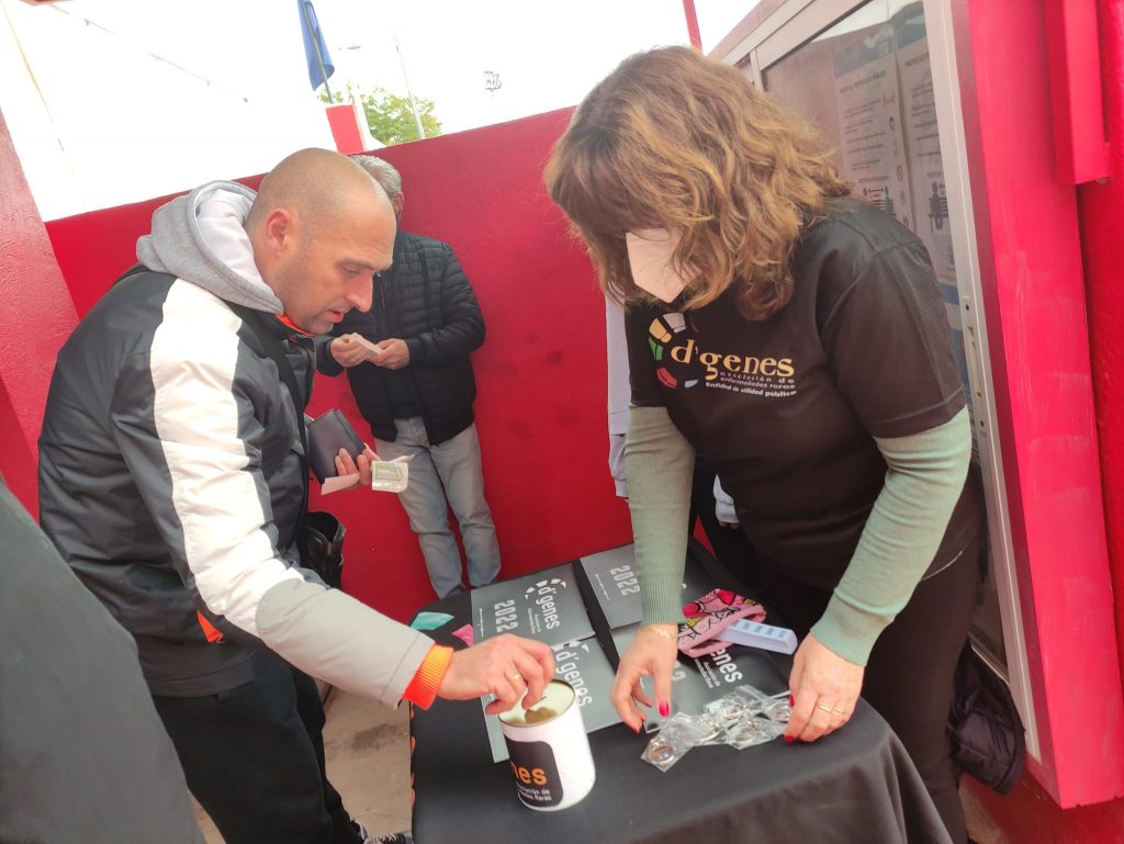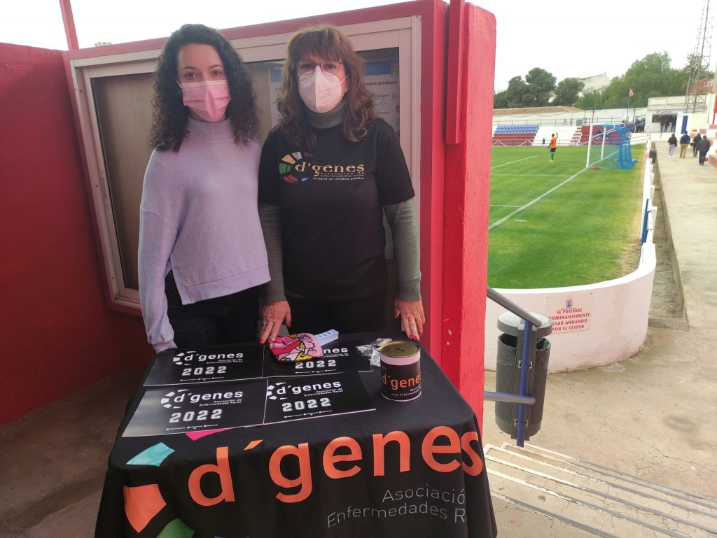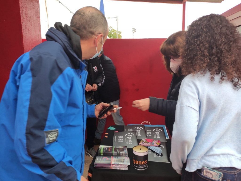 El partido tenía además carácter solidario pues 3 euros del importe de cada entrada se destinará a D´Genes. Además, la asociación también ha instalado una mesa informativa en la que también se han recogido aportaciones solidarias de las personas que han querido colaborar.
