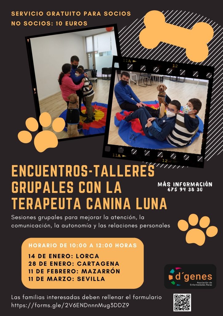 • El programa de Encuentros talleres grupales con la participación de la terapeuta canina Luna continúa el próximo 14 de enero con una sesión en Lorca