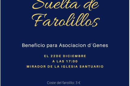 El próximo 22 de diciembre tendrá lugar una suelta de farolillos en Campos del Río a beneficio de la Asociación de Enfermedades Raras D´Genes. Los farolillos se pueden adquirir al precio de 3 euros.