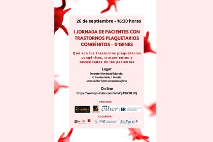• El próximo 26 de septiembre se celebrará en Murcia la I Jornada de Pacientes con Trastornos Plaquetarios Congénitos – D´Genes, que se podrá seguir también de manera on line