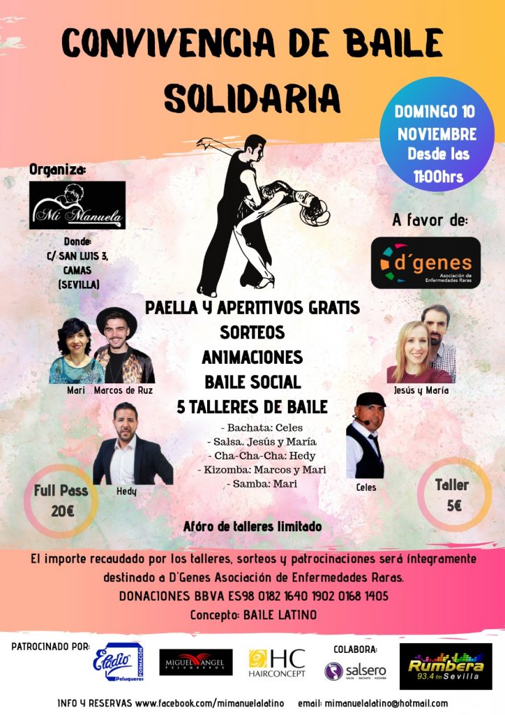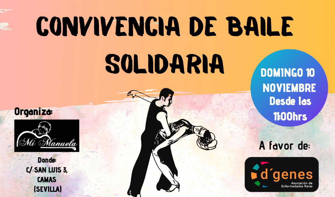 El próximo 10 de noviembre tendrá lugar en Camas (Sevilla) una convivencia de baile solidaria a beneficio de la Asociación de Enfermedades Raras D´Genes, organizada por Mi Manuela.