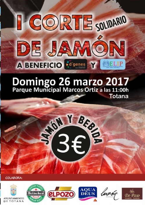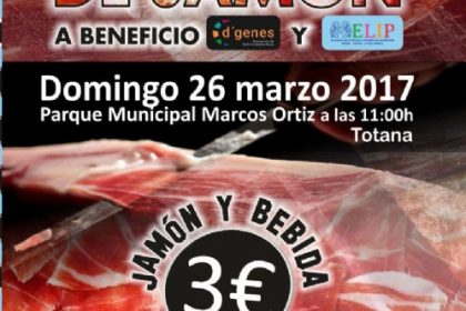 El próximo domingo, día 26 de marzo, se celebrará en Totana el I Corte Solidario de Jamón a beneficio de D´Genes y AELIP