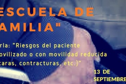 El próximo jueves, 13 de septiembre, tendrá lugar una nueva charla del ciclo “Escuela de Familia” de la Asociación de Enfermedades Raras D´Genes. La sesión, titulada “Riesgos del paciente inmovilizado o con movilidad reducida escaras, contracturas, etc)”, tendrá lugar a partir de las 20:00 horas en el Centro Multidisciplinar de Atención Integral a Personas y Familias con Síndrome X Frágil y otras enfermedades raras “Pilar Bernal Giménez” de Murcia.