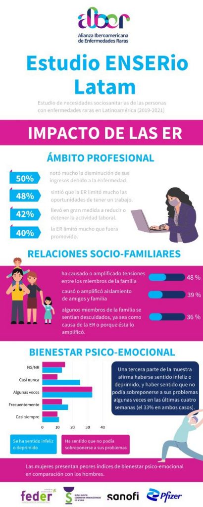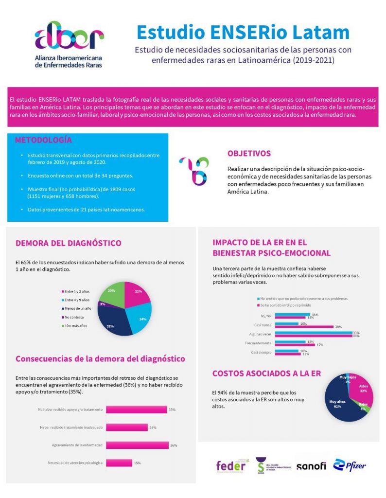 El informe del estudio ENSERio-LATAM permite conocer las demandas sociales de las personas con enfermedades poco frecuentes en Latinoamérica, información indispensable para proponer planes de atención en salud, programas de entrenamiento para profesionales e instar a los diferentes gobiernos a establecer espacios de cobertura acordes a las necesidades que presenta el colectivo de personas que conviven con una patología poco frecuente en Latinoamérica, que asciende a 42 millones de personas.