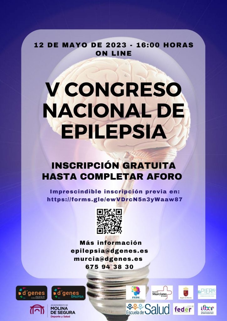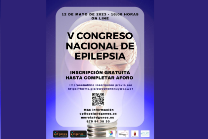 El V Congreso Nacional de Epilepsia, promovido por la Asociación de Enfermedades Raras D’Genes y la Concejalía de Deporte y Salud del Ayuntamiento de Molina de Segura, se celebrará de manera online el viernes 12 de mayo, a las 16:00 horas. La inscripción es gratuita.