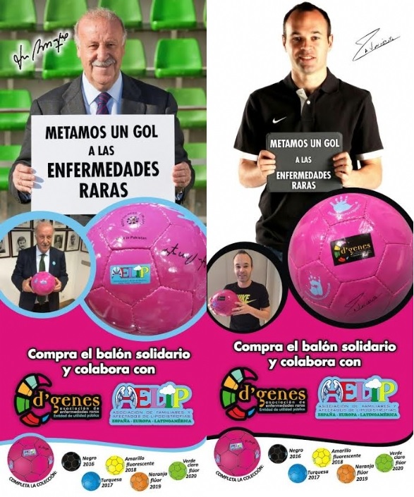 Desde D´Genes y AELIP quieren agradecer a todas las personas que han comprado un balón solidario porque con su gesto contribuyen a obtener fondos destinados a mejorar la calidad de vida de las personas afectadas por patologías poco frecuentes. Asimismo, se da difusión a la realidad de estas patologías ya que algo tan utilizado como un balón, sirve para promocionar los logos e imágenes corporativas de ambas entidades que trabajan en favor de las personas que padecen enfermedades de baja prevalencia y lipodistrofias.