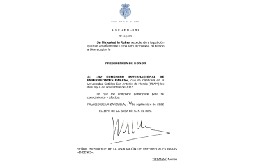Su Majestad la Reina Doña Letizia ha aceptado la Presidencia de Honor del XV Congreso Internacional de Enfermedades Raras, que se celebrará los días 3 y 4 de noviembre en Murcia y también de manera on line