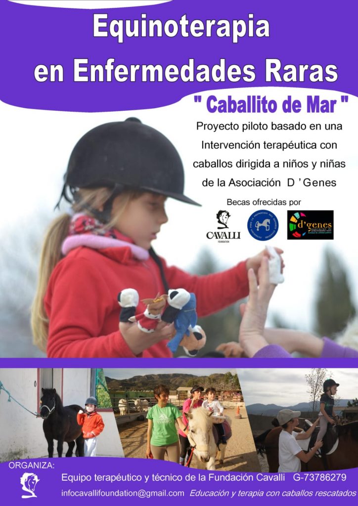 El proyecto de equinoterapia en enfermedades raras «Caballito de mar» es un proyecto piloto basado en una intervención terapéutica con caballos dirigida a niños y niñas de D´Genes.