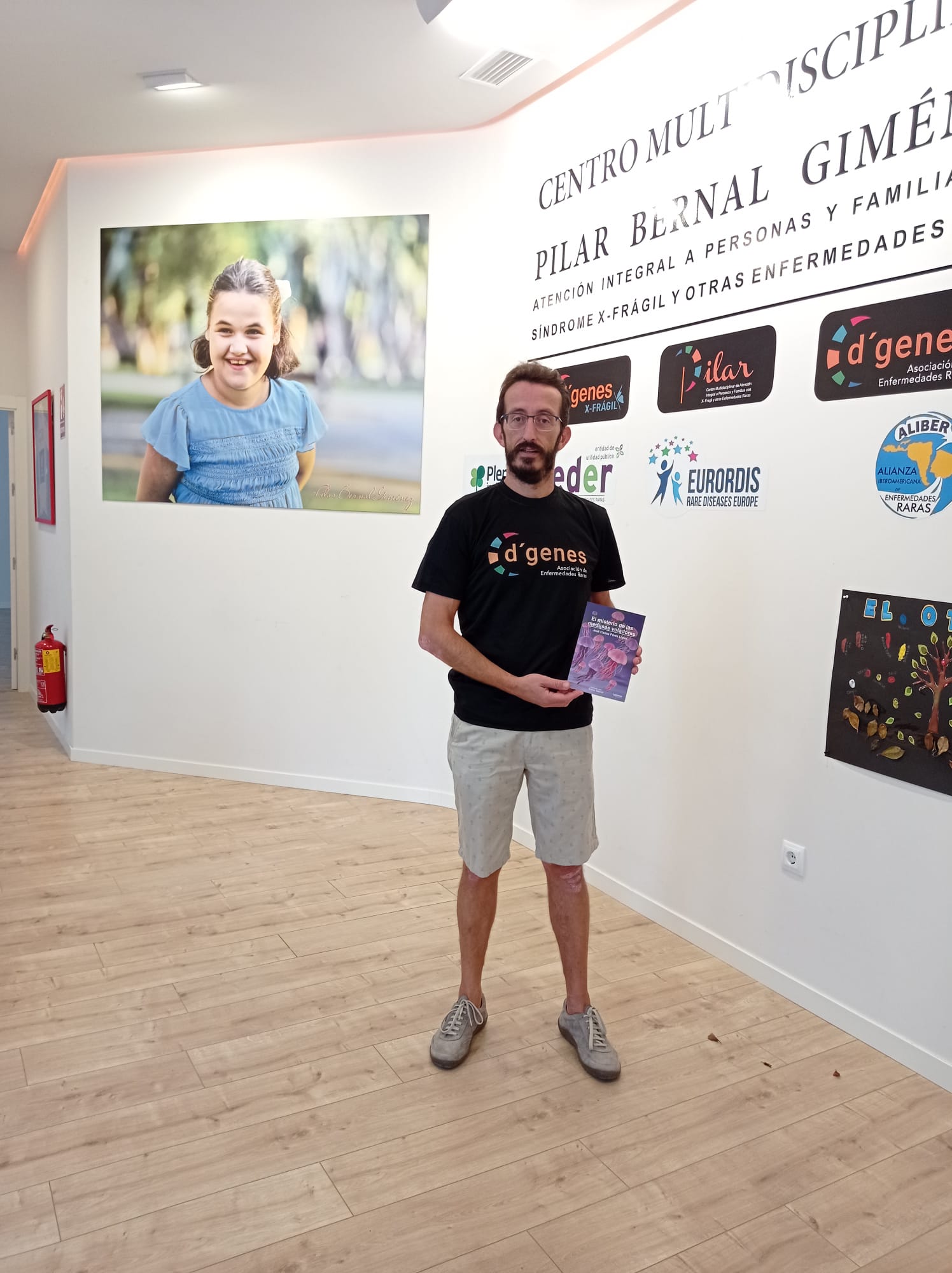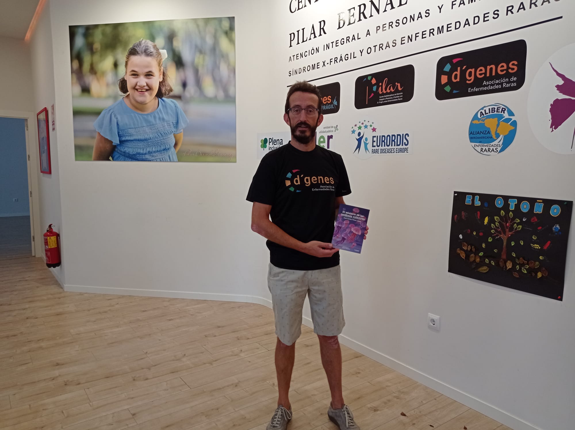 José Carlos Pérez, autor del libro “El misterio de las medusas voladoras», volumen con el que da visibilidad a D´Genes, al incluir en la solapa el logo de la asociación, ha visitado el Centro Multidisciplinar de atención integral a personas y familias con enfermedades raras y sin diagnóstico «Celia Carrión Pérez de Tudela», donde ha recibido una camiseta de la asociación.
