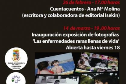 El día 14 de marzo, a las 19:00 horas, se inaugurará la exposición "Las enfermedades raras llenas de vida", un recorrido fotográfico que permite acercar a las necesidades y realidad de personas y familias que conviven con alguna de las más de siete mil enfermedades de baja prevalencia que se conocen. La muestra permanecerá abierta hasta el viernes 18 de marzo.