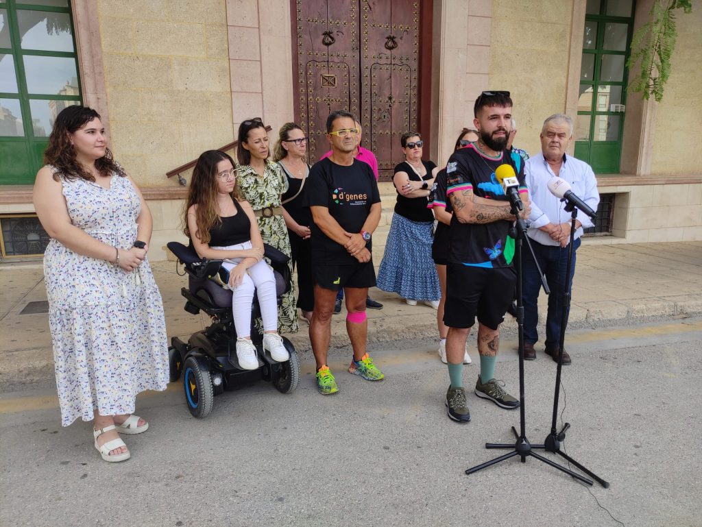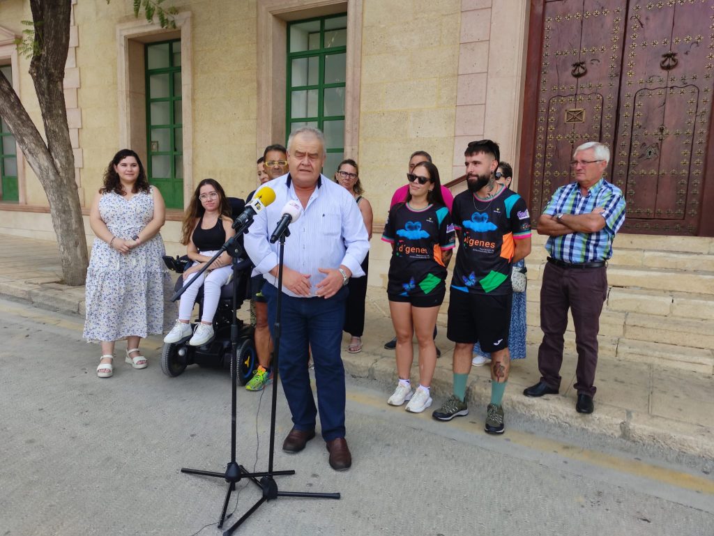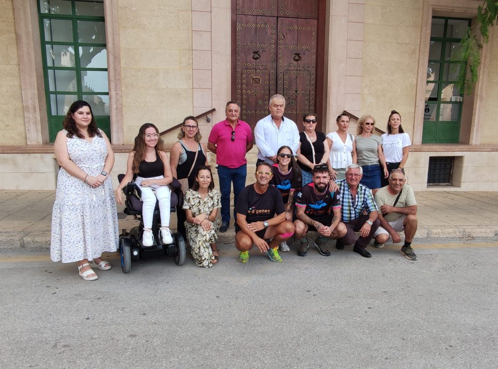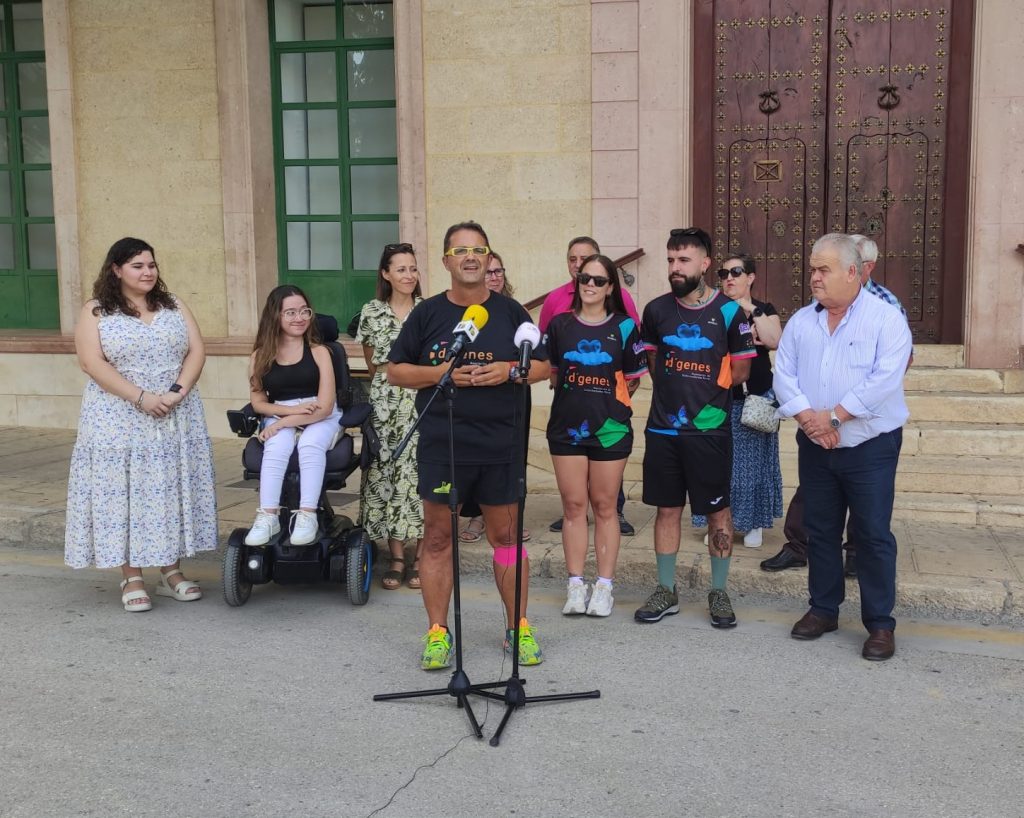 El presidente de D´Genes, Juan Carrión, junto a otros miembros de la directiva de la entidad y socios de la misma, acompañados por el alcalde de Totana, Juan Pagán, y las concejalas de Bienestar Social, Isabel García Merinos, y Deportes, Patricia Corbalán, desearon a los dos jóvenes éxito en este reto personal que van a emprender y que les llevará a recorrer durante un año aproximadamente unos 12.000 kilómetros según sus previsiones, pasando al menos por cinco países iberoamericanos.