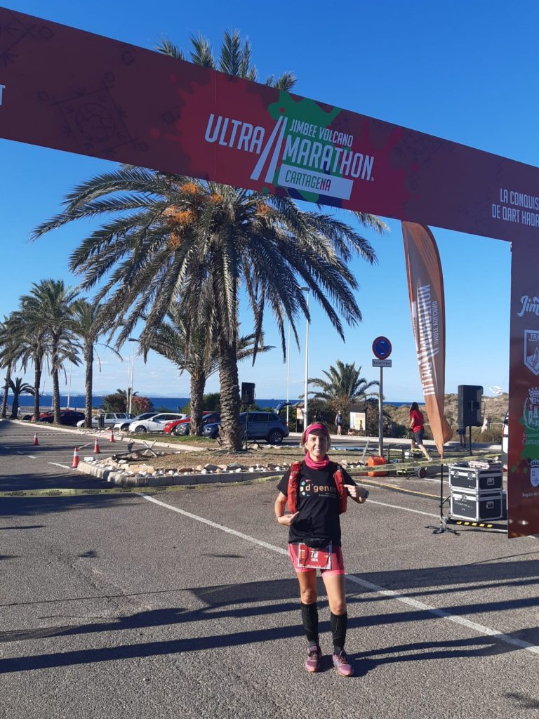 Lucía corrió la modalidad de los 112 kilómetros ataviada con camiseta de D´Genes como apoyo a las personas que conviven con patologías poco frecuentes para dar visibilidad. La primera edición de la Volcano Ultramarathon partió desde Cabo de Palos hasta La Azohía para regresar hasta Cartagena.