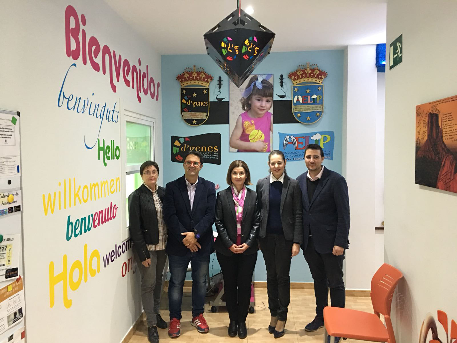 Durante la visita, la responsable regional estuvo acompañada, entre otros, por el presidente de D´Genes, Juan Carrión, y el director de esta asociación, Miguel Ángel Ruíz.