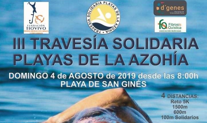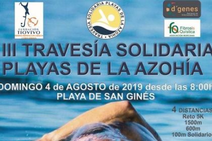 La playa de San Ginés será el escenario de la III Travesía Solidaria Playas de La Azohía, que celebrará el domingo 4 de agosto. El dinero recaudado de las inscripciones de la prueba ira destinado a tres entidades, una de ellas la Asociación de Enfermedades Raras D´Genes.