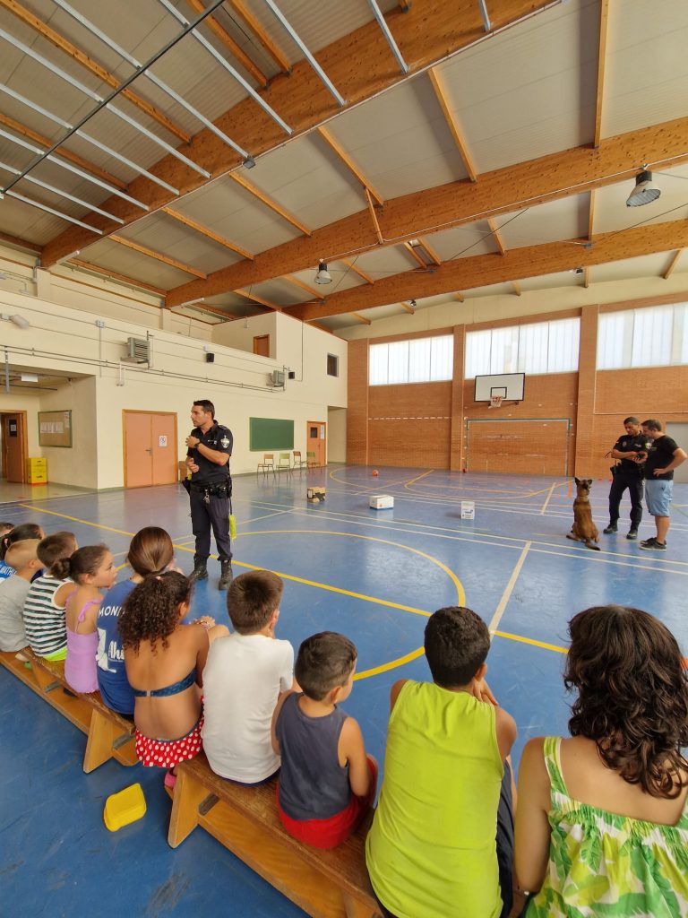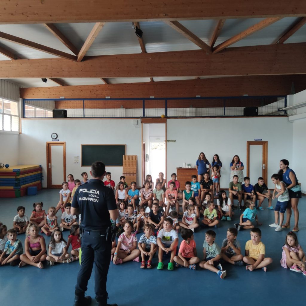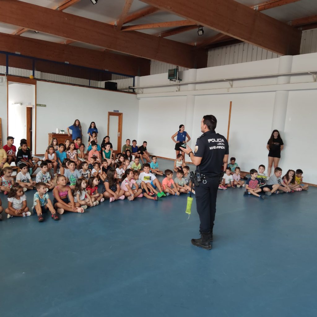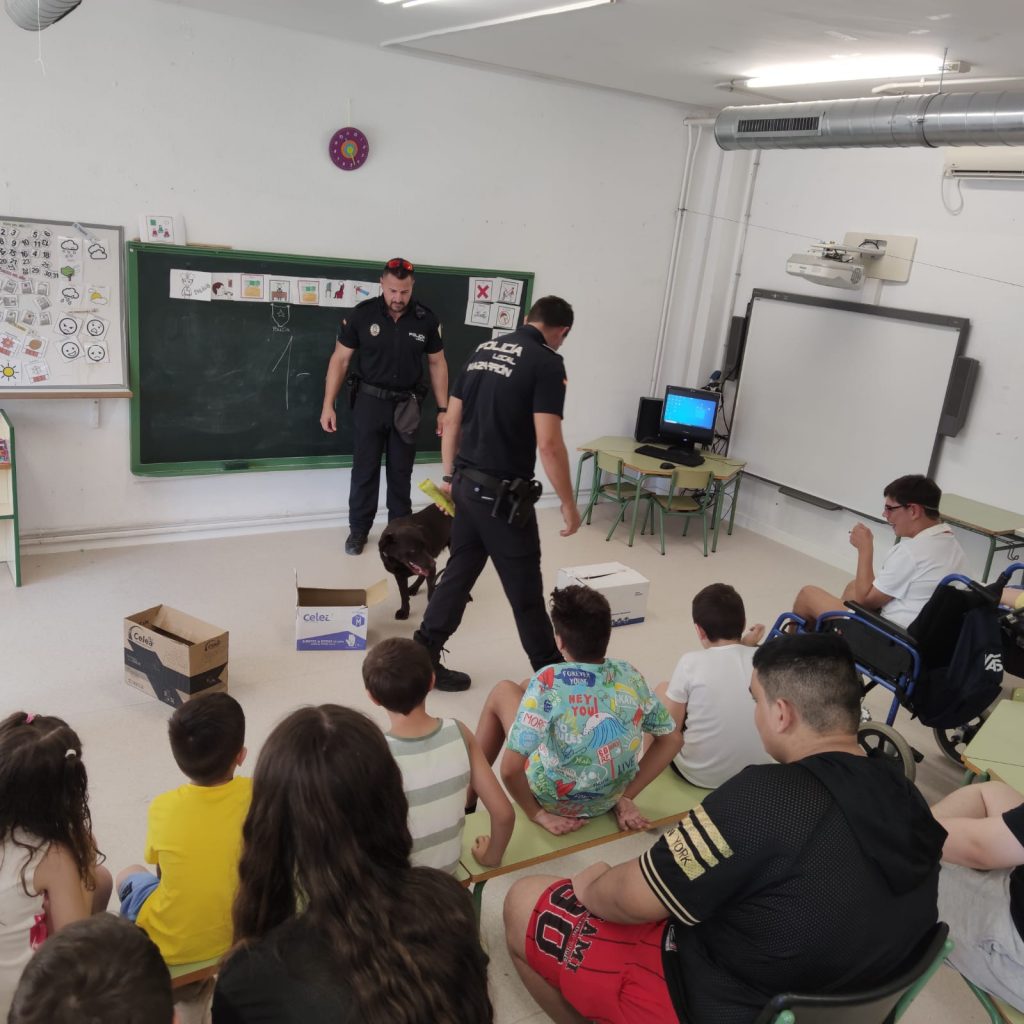 Los agentes les han explicado el trabajo que realizan para velar por la seguridad de los ciudadanos, normas de seguridad y nociones de educación vial. Los agentes también han estado acompañados por un perro de la unidad canina de la Policía Local de Mazarrón, de cuyo trabajo han realizado una exhibición a los pequeños.