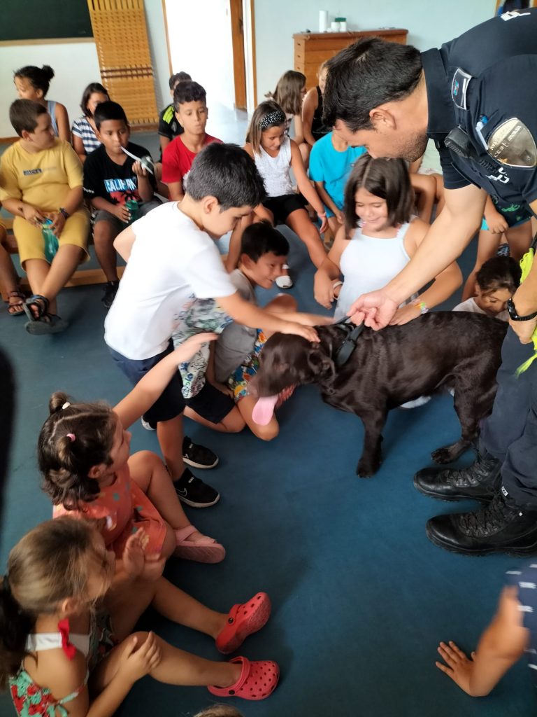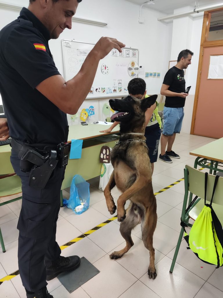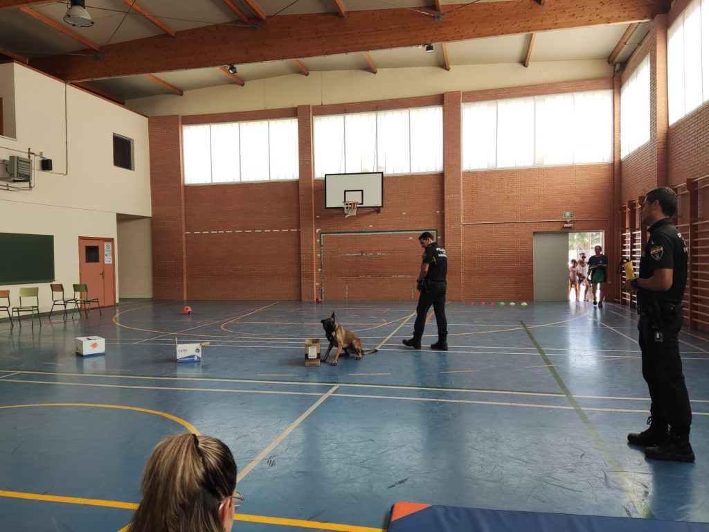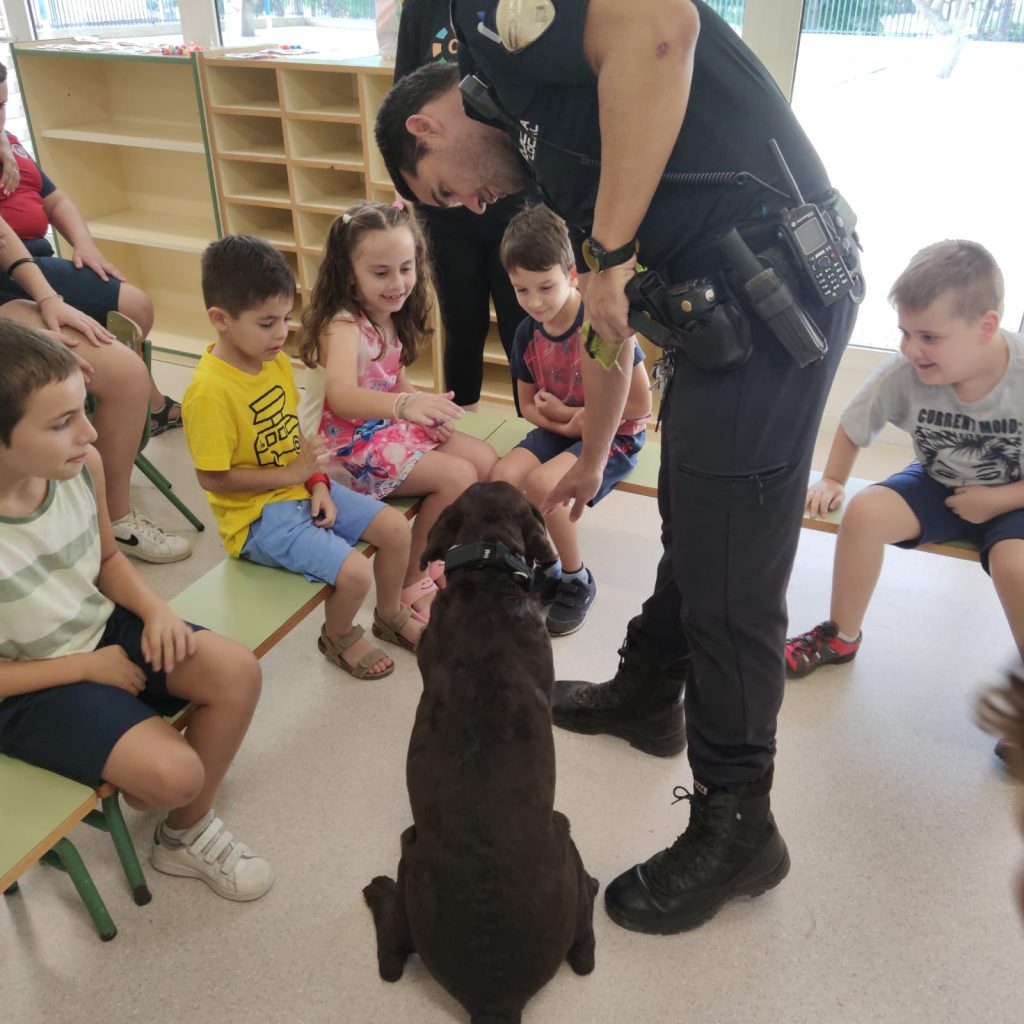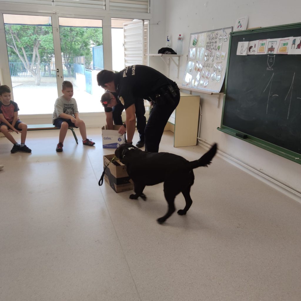 Los agentes les han explicado el trabajo que realizan para velar por la seguridad de los ciudadanos, normas de seguridad y nociones de educación vial. Los agentes también han estado acompañados por un perro de la unidad canina de la Policía Local de Mazarrón, de cuyo trabajo han realizado una exhibición a los pequeños.