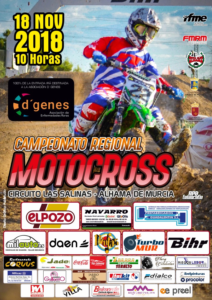 • La prueba de motocross del Campeonato Regional de Alhama de Murcia solidaria con D´Genes que se tuvo que aplazar por las inclemencias meteorológicas se celebrará el 18 de noviembre