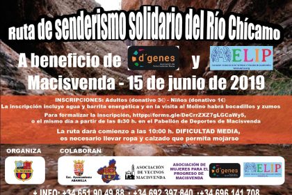 • La Ruta de Senderismo solidario del Río Chicamo, actividad solidaria con D´Genes y AELIP, se celebrará el próximo 15 de junio