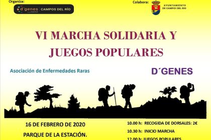 El próximo domingo, 16 de febrero, tendrá lugar en el municipio murciano de Campos del Río la VI Marcha Solidaria y Juegos Populares a beneficio de la Asociación de Enfermedades Raras D´Genes.