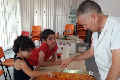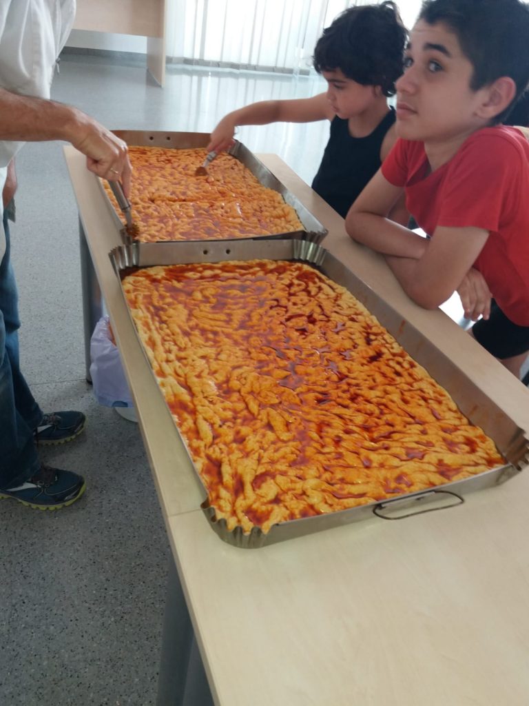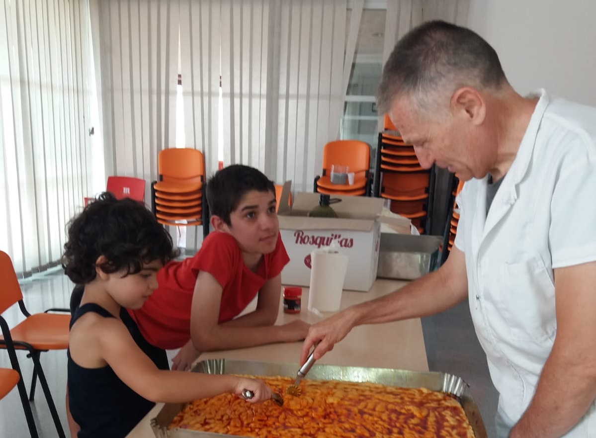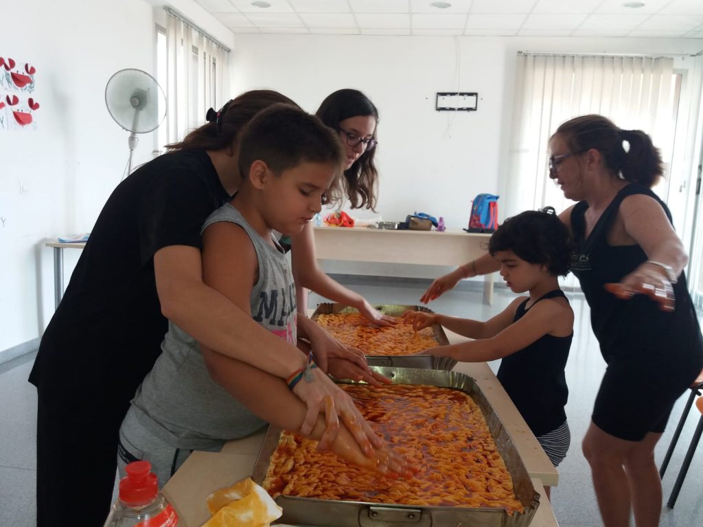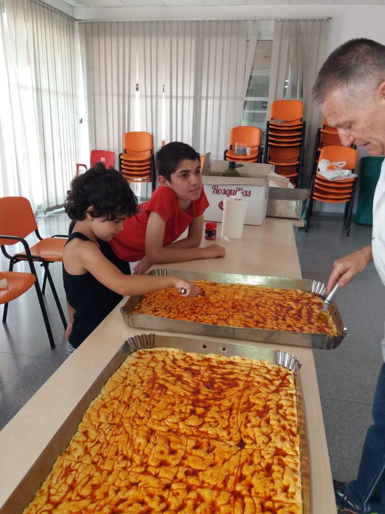 En el marco de las actividades que se organizan en este programa de ocio y tiempo libre que se desarrolla en el mes de julio en unas dependencias cedidas por el Ayuntamiento de Totana en el Centro social del barrio Olímpico Las Peras, se ha recibido la visita de Ginés Cañizares, de esta tradicional panadería totanera. Allí, con la ayuda de los pequeños asistentes, a los que ha mostrado todo el proceso, se han preparado dos bandejas de tortas que se han llevado posteriormente al horno para su cocción. Una vez hechas, niños y monitores han dado buena cuenta de ellas.