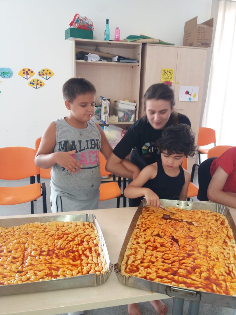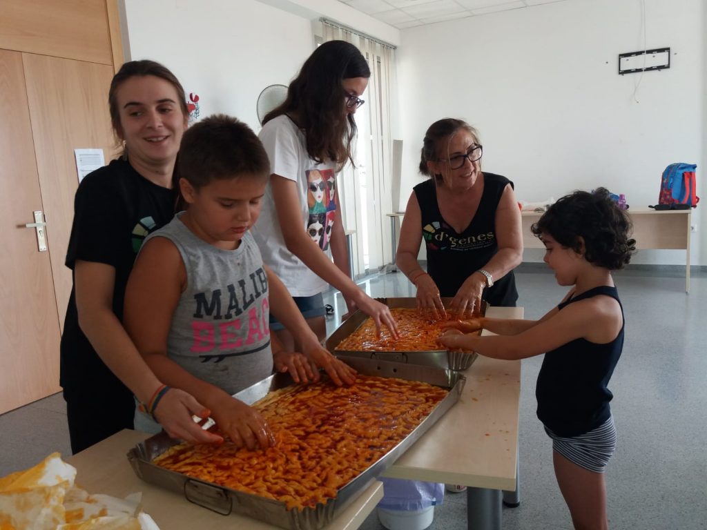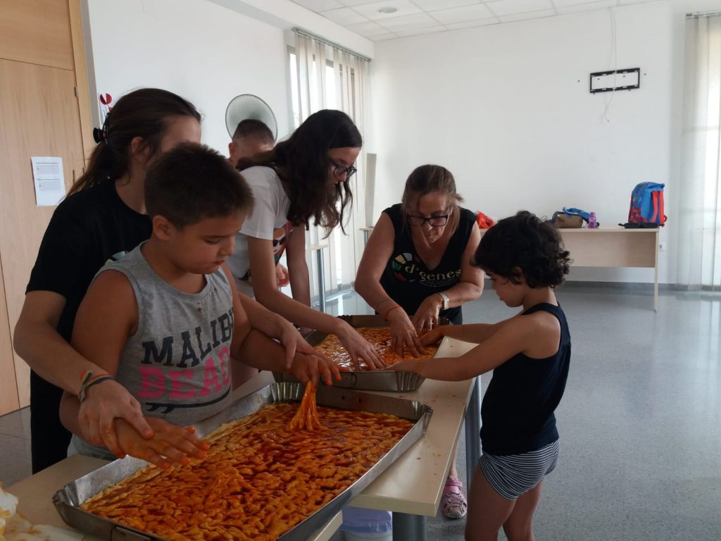 Los niños asistentes a la Escuela de Verano que la Asociación de Enfermedades Raras D´Genes está llevando a cabo en Totana han ejercido de panaderos por un día. Esta mañana han tenido la oportunidad de elaborar unas ricas tortas de pimiento, con la inestimable colaboración de Panadería Cañizares, que ha querido colaborar y enseñar a los más pequeños cómo se elaboran estas deliciosas piezas.