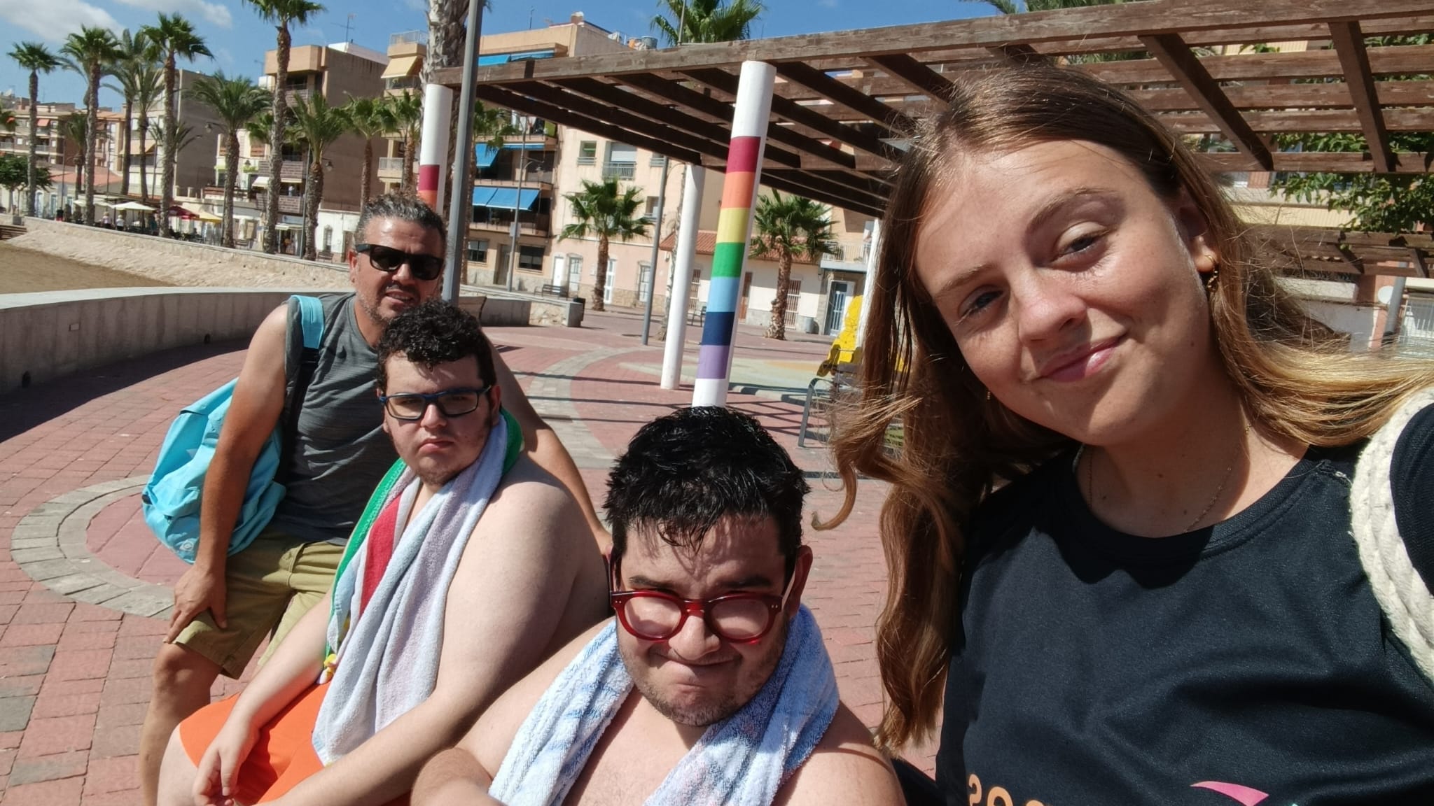 El último fin de semana de julio los jóvenes participantes dieron una vuelta por el paseo marítimo del Puerto de Mazarrón y disfrutaron de un refrescante baño en la playa. Además, se tomaron un rico helado en una terraza para hacer frente al calor, mientras charlaban de manera animada.