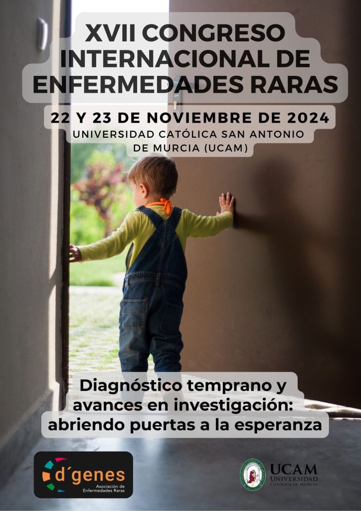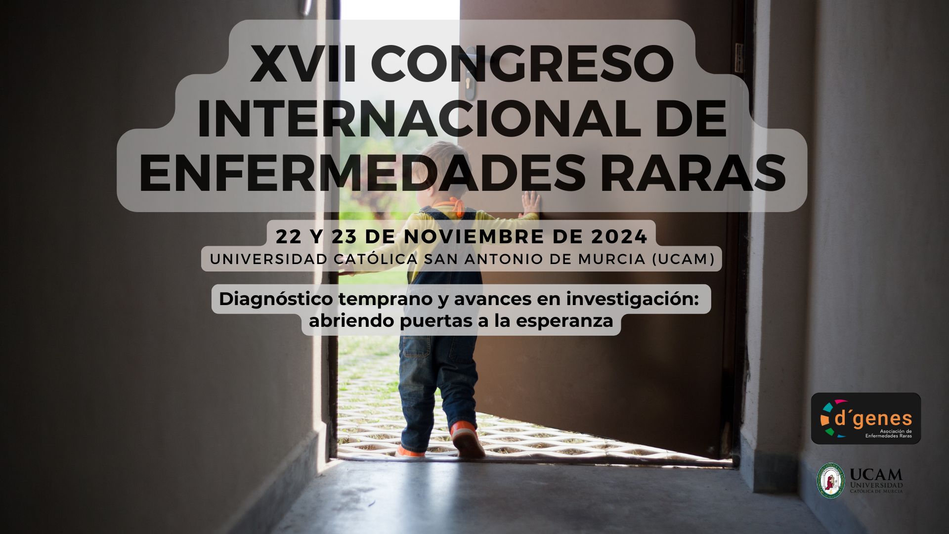 Ya está abierto el plazo de inscripción para el XVII Congreso Internacional de Enfermedades Raras que se va a celebrar los días 22 y 23 de noviembre organizado por la Asociación de Enfermedades Raras D´Genes y la Universidad Católica San Antonio de Murcia (UCAM). El Congreso se celebrará de manera presencial en el campus de Los Jerónimos de la UCAM de Murcia, si bien también se podrá seguir de manera on line.