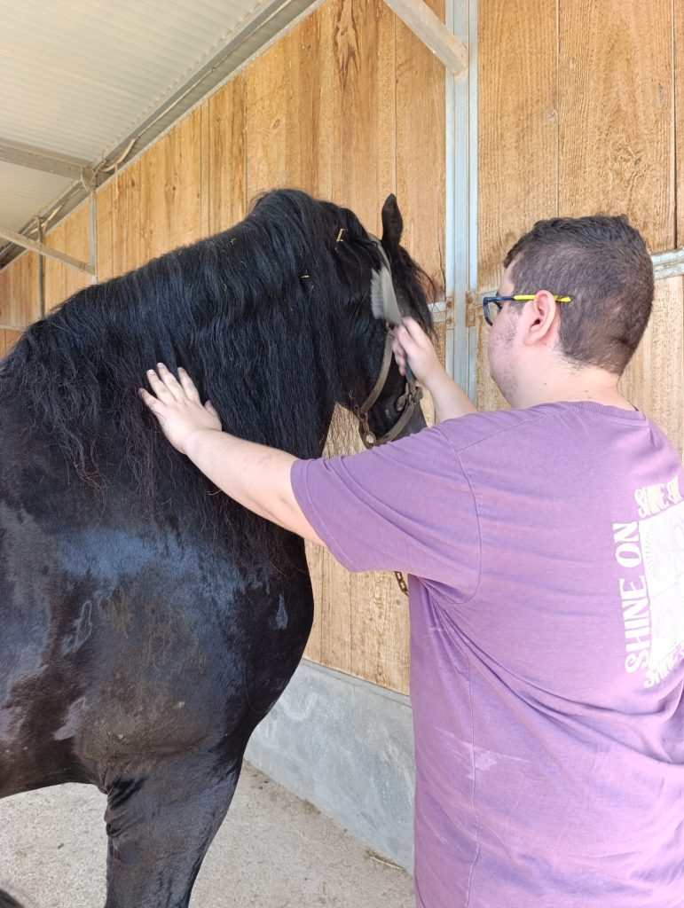 En este sentido, se realizaron diferentes dinámicas como facilitar el contacto directo con los animales, cepillado y peinado de los caballos, preparación de material y uso, paseo de la mano e incluso monta.