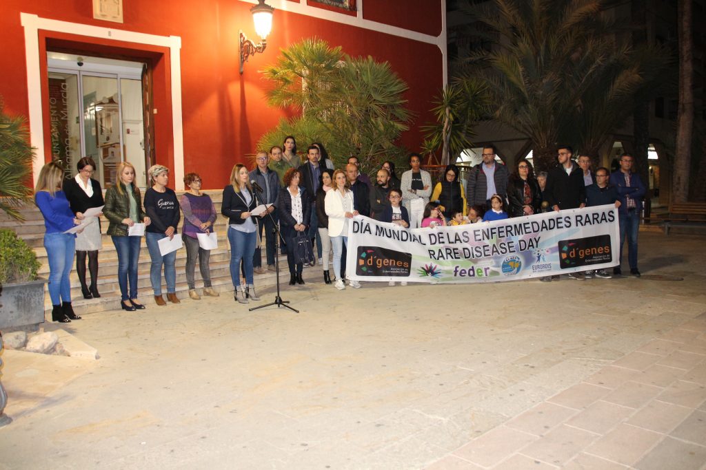 A las puertas del Ayuntamiento de Alhama de Murcia, la corporación municipal y miembros de la Asociación de Enfermedades Raras D´Genes dieron lectura a un manifiesto que recogía los principales puntos de la Declaración Institucional por el Día Mundial de las Enfermedades de la Federación Española de Enfermedades Raras (FEDER). El acto también contó con la asistencia de familias que conviven con patologías poco frecuentes y voluntarios de la asociación.