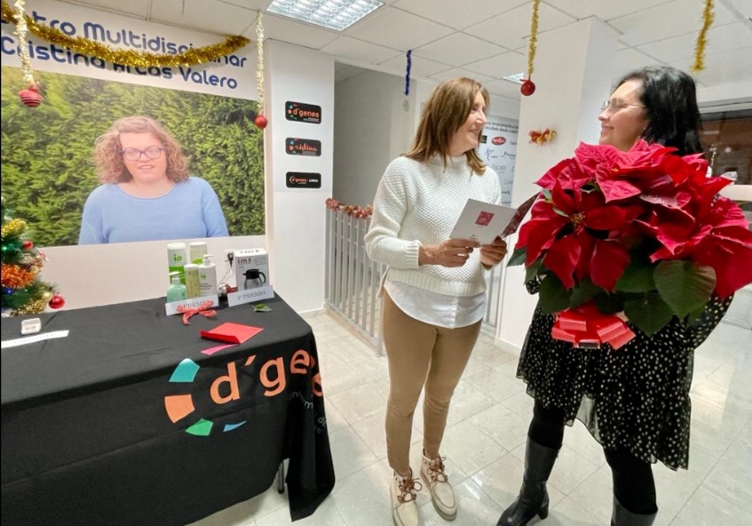 Una de las asociaciones ha sido D´Genes, en cuyo centro multidisciplinar la directiva Rosa Valero ha recibido a una de las mujeres LUCERNAS, que en un gesto de hermanamiento ha ofrecido la Flor de Pascua  con una tarjeta en la que las palabras han  invitado  a la  unión y al abrazo sincero y como símbolo de fraternidad y hermanamiento.
