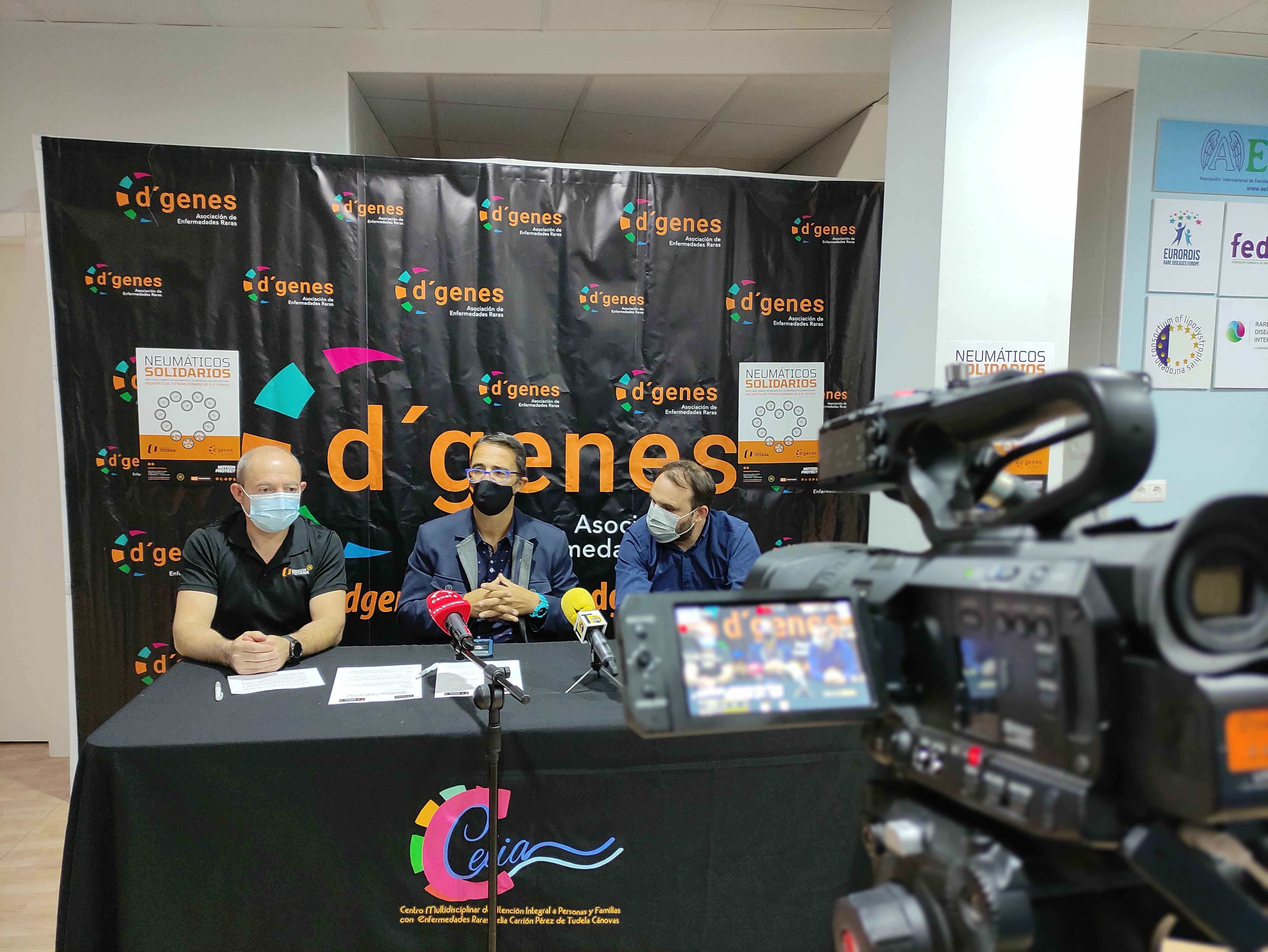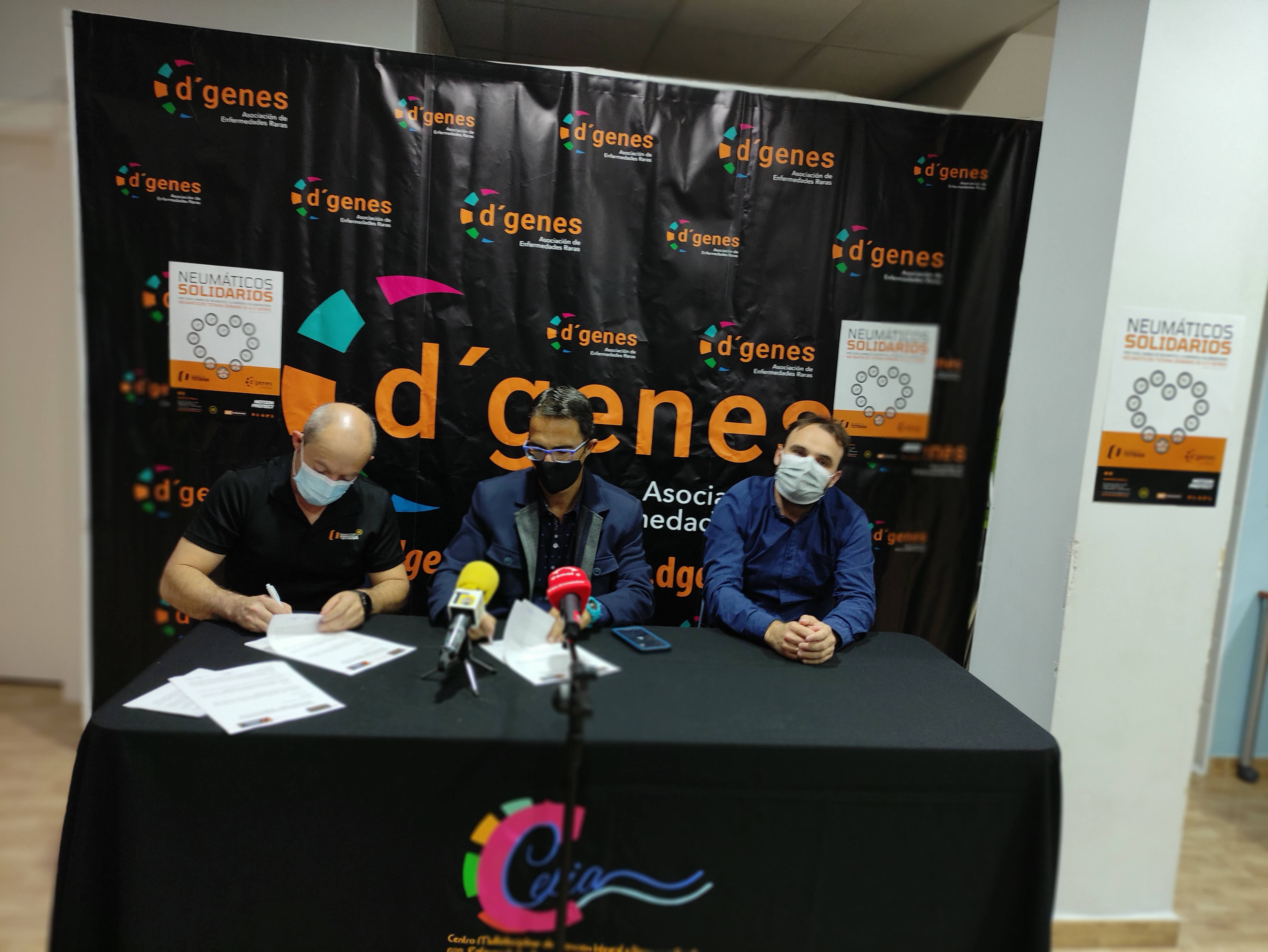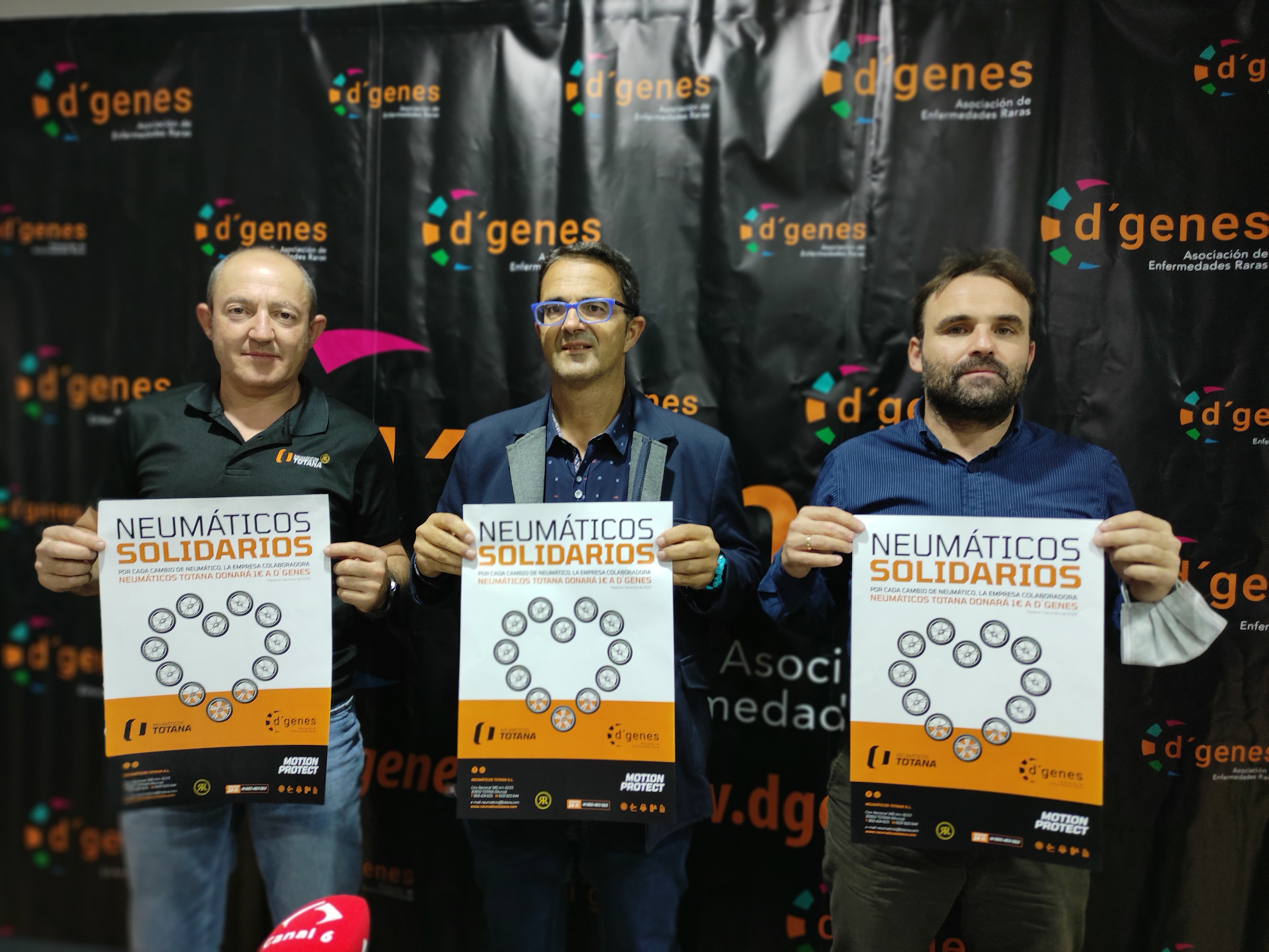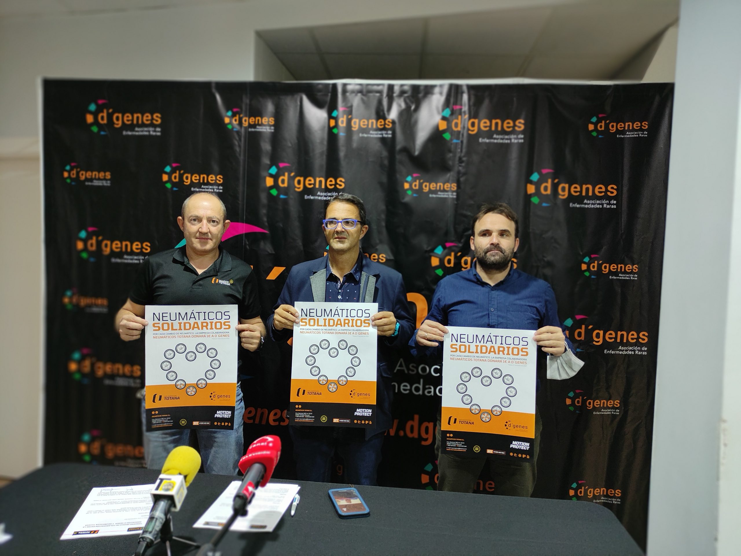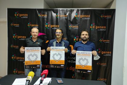 El presidente de D´Genes, Juan Carrión, y el gerente de Neumáticos Totana, José Antonio González Benítez, han presentado esta campaña, y han suscrito un convenio de colaboración que recoge esta iniciativa y la posibilidad de otras acciones futuras que se puedan llevar a cabo. En el acto se ha contado también con la presencia del concejal de Bienestar Social del Ayuntamiento de Totana, Javier Baños.