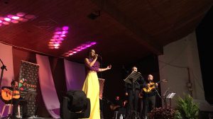 Tras la actuación, representantes de D´Genes hicieron entrega de un ramo de flores a la artista malagueña y de una placa de reconocimiento al grupo Alma llanera por su aportación musical y colaboración.