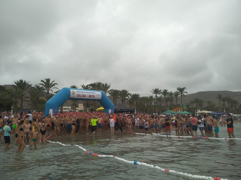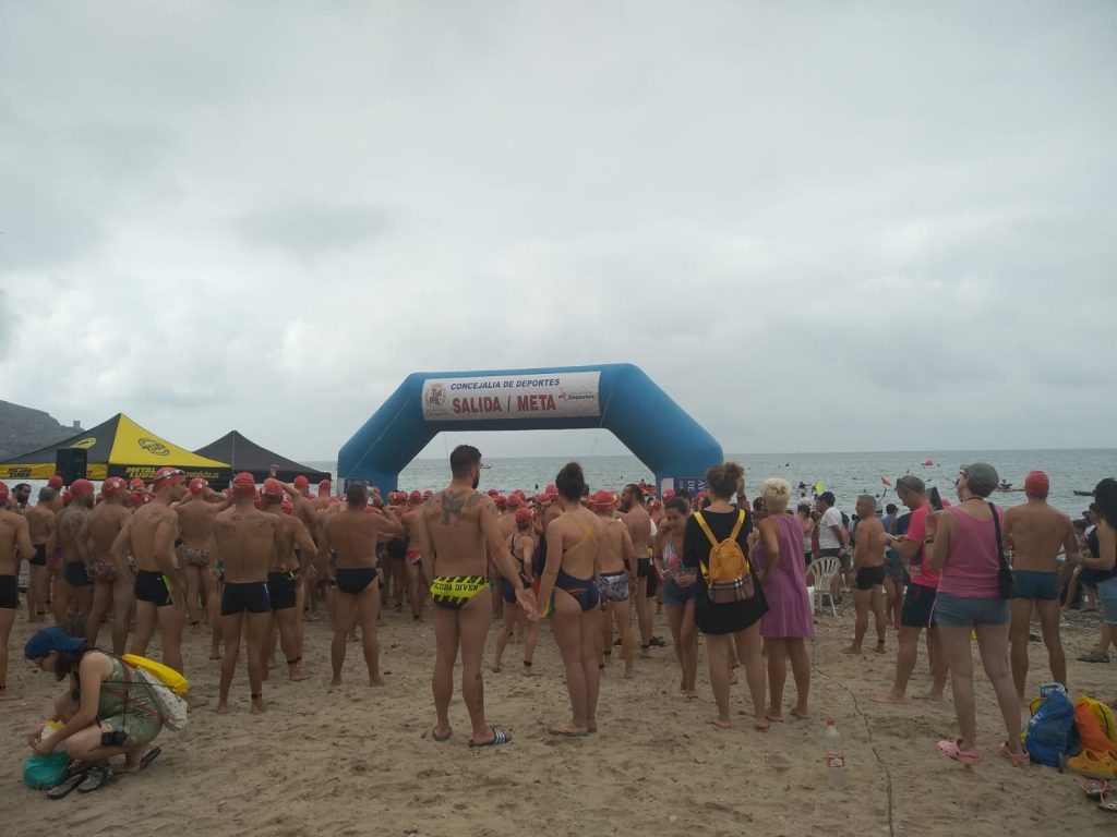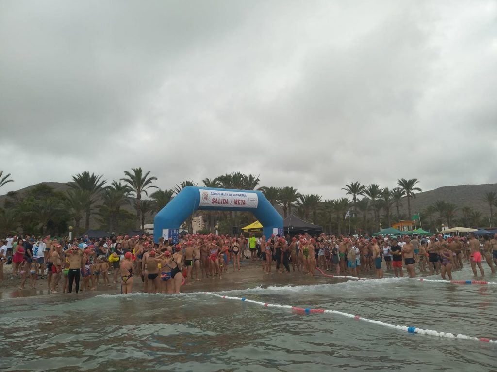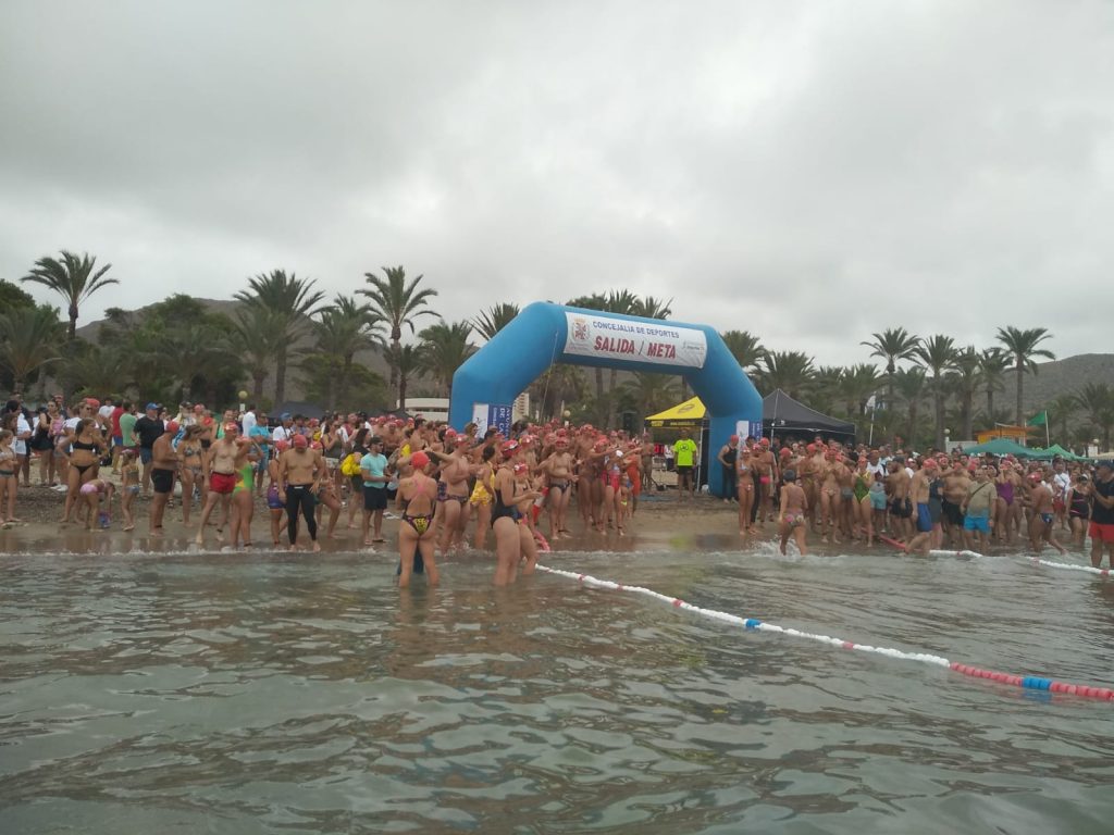 La playa de San Ginés ha sido el escenario esta mañana de la III Travesía Solidaria Playas de La Azohía en la que han participado un buen número de nadadores.