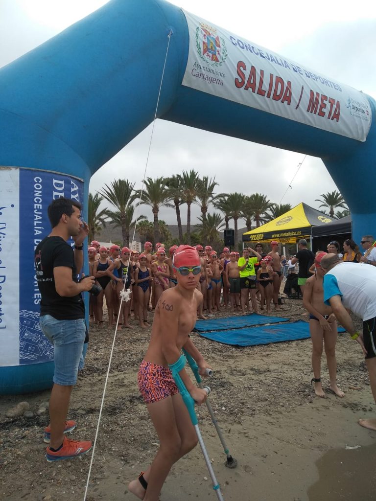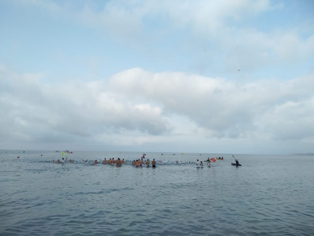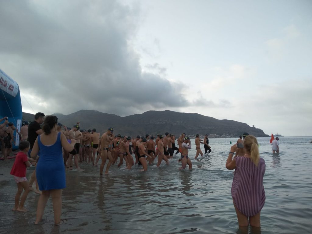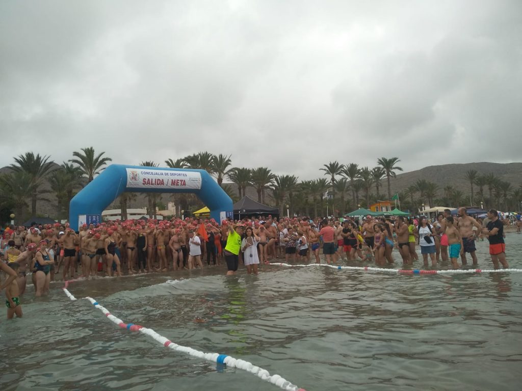 La playa de San Ginés ha sido el escenario esta mañana de la III Travesía Solidaria Playas de La Azohía en la que han participado un buen número de nadadores.