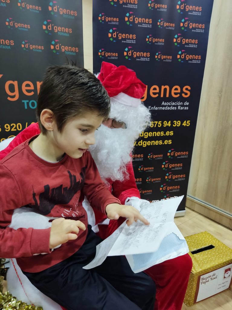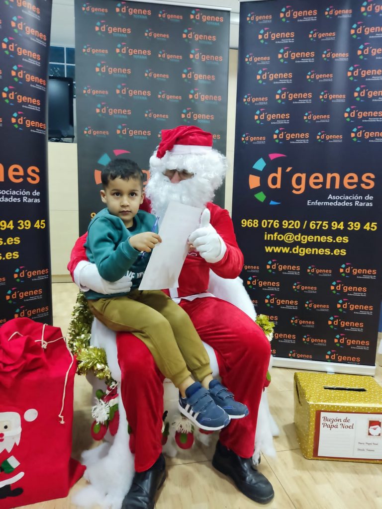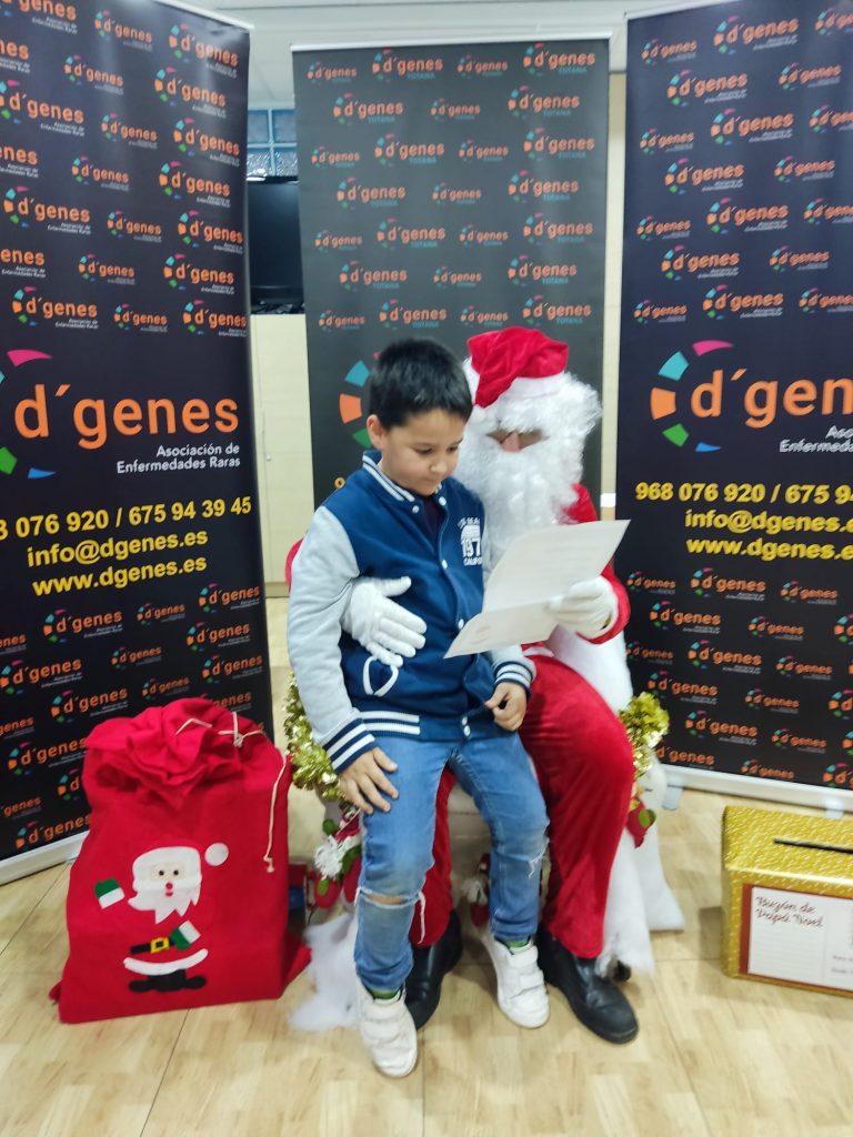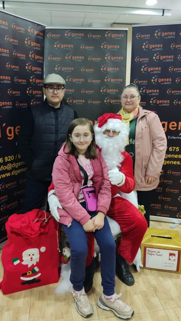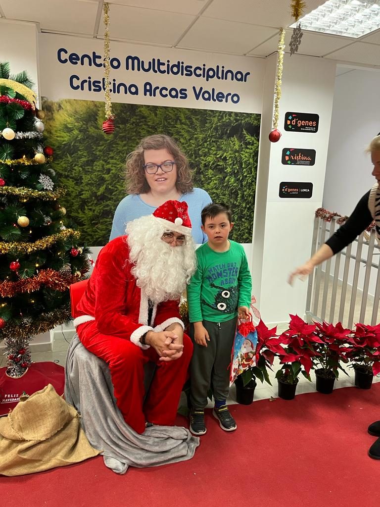 El pasado 23 de diciembre, el los centros multidisciplinares «Celia Carrión Pérez de Tudela» de Totana, «Pilar Bernal Giménez» de Murcia, «Cristina Arcas Valero» de Lorca y «Pablo Ramírez García» de El Coronil, así como en las delegaciones de Cartagena y Mazarrón, D´Genes organizó una tarde de convivencia con la asistencia de profesionales de la asociación y usuarios y familiares que incluyó merienda y la visita de Papá Noel, a quien los más pequeños pudieron hacer entrega de sus cartas.