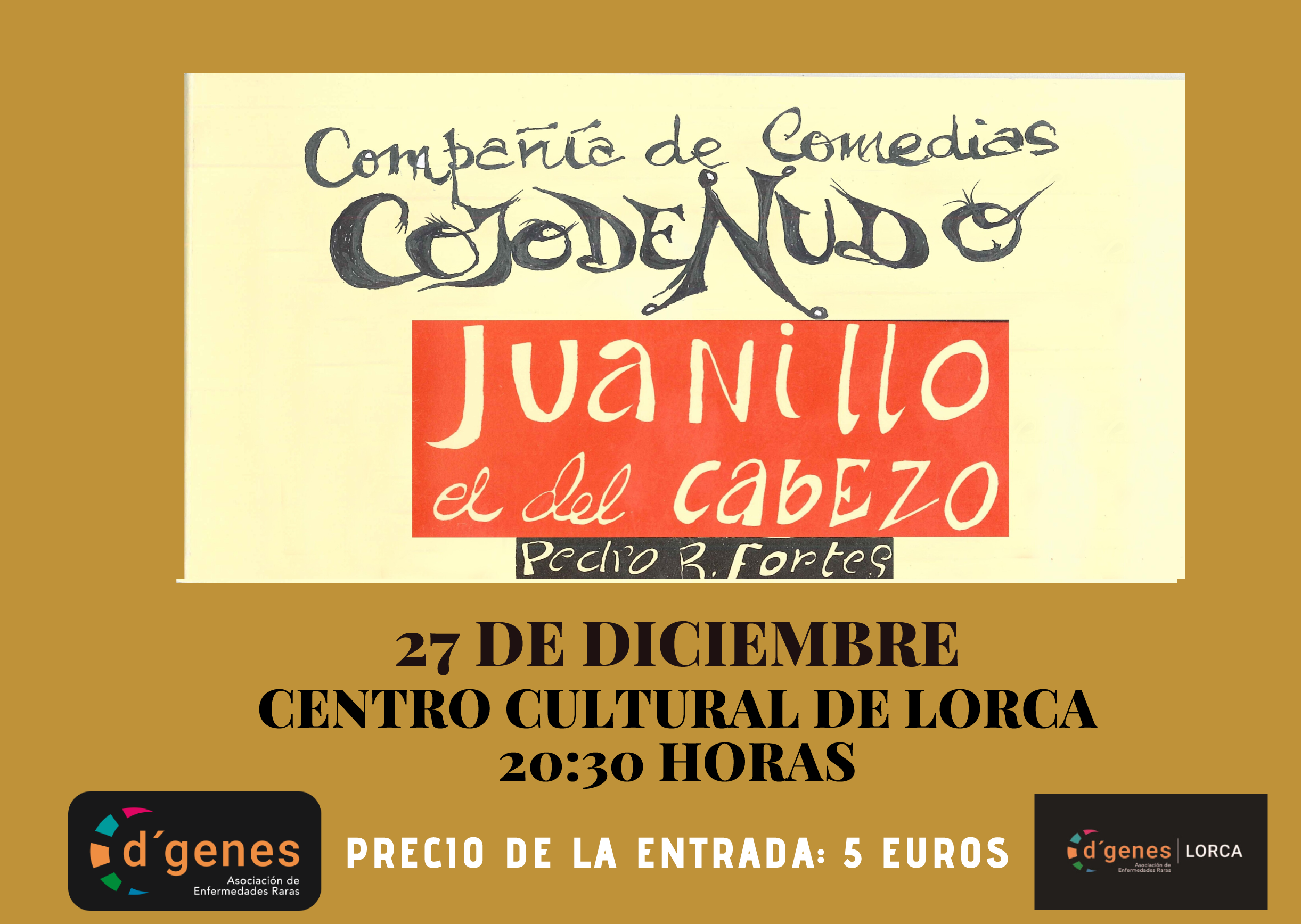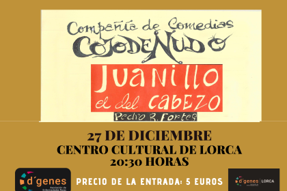 La Compañía de Comedias Cojo de nudo pondrá en escena el recital «Juanillo el del Cabezo» el próximo 27 de diciembre en Lorca. Este recital tendrá tintes solidarios ya que los beneficios que se obtengan se destinarán a la Asociación de Enfermedades Raras D´Genes.