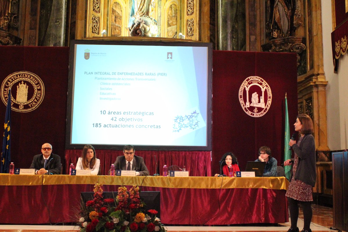 La directora general de Farmacia, Investigación y Atención al Ciudadano de la Región de Murcia, María Teresa Martínez, habló sobre el Plan Integral de Enfermedades Raras en el que la administración regional trabaja, un plan interdepartamental por cuanto implica a varias consejerías y que incluye cerca de doscientas actuaciones concretas.