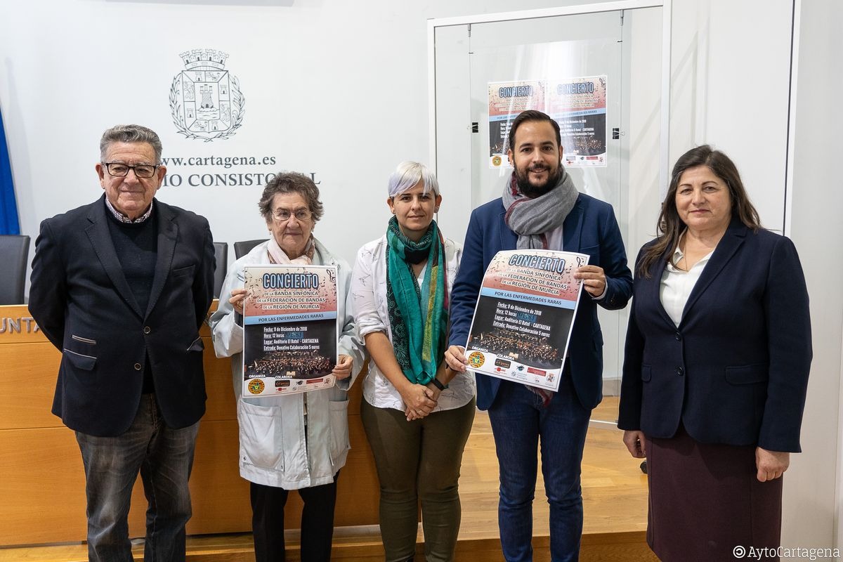 Hoy se ha presentado el concierto solidario a favor de las enfermedades raras que la Banda Sinfónica de la Federación de Bandas de Música de la Región de Murcia ofrecerá el próximo 9 de diciembre en el auditorio El Batel de Cartagena. Los beneficios irán destinados a la Asociación de Enfermedades Raras D´Genes y Retimur.